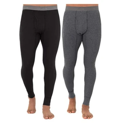 Fruit of the Loom Men's Recycled Premium Waffle Thermal Underwear Bottom (1, 2, 3, and 4 Packs) Pajama, Black/Greystone Heather, Small