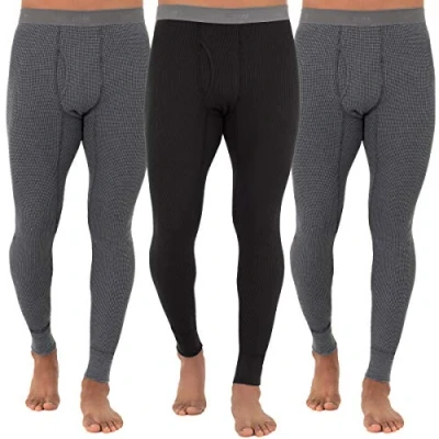 Fruit of the Loom Men's Recycled Premium Waffle Thermal Underwear Long Johns Bottom (1, 2, 3, and 4 Packs) Pajama, Greystone Heather/Greystone Heather/Black, X Large (Pack 3)