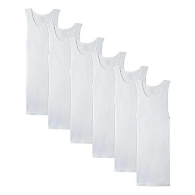 Fruit of the Loom Men's Sleeveless Tank A Shirt, Tag Free & Moisture Wicking, Ribbed Stretch Fabric Base Layer Top, 6 Pack White, XXL (Pack 6)