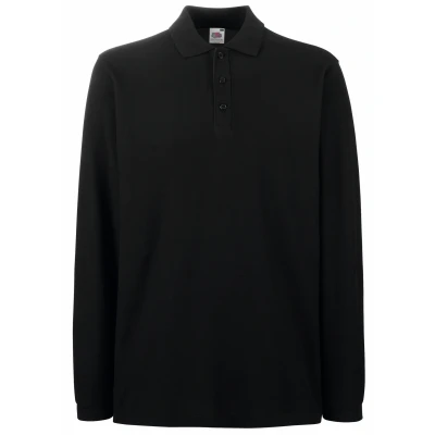 Fruit of the Loom Mens Premium Long Sleeve Polo Shirt Black Cotton Size X Large