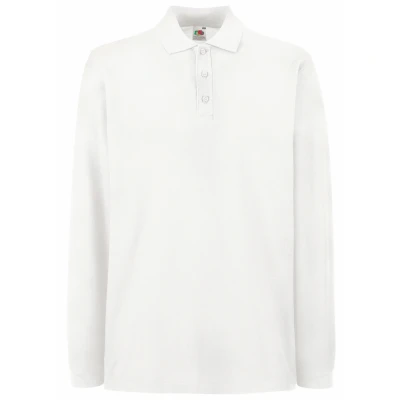 Fruit of the Loom Mens Premium Long Sleeve Polo Shirt White Cotton Size Large