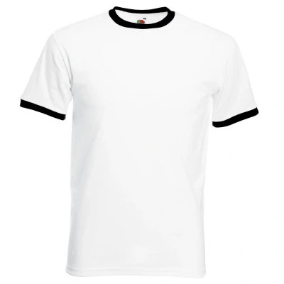 Short sleeve Ringer T-Shirt. Cotton/Lycra® rib crew neck with taped neckline for comfort. Produced using Belcoro® yarn for a softer feel and cleaner printing process. Fine knit gauge for enhanced printability. Weight: 160-165g/m². Fabric: 100% Cotton, Belcoro® yarn. S (35-37: To Fit (ins)). M (38-40: To Fit (ins)). L (41-43: To Fit (ins)). XL (44-46: To Fit (ins)). 2XL (47-49: To Fit (ins)). FRUIT OF THE LOOM - a brand steeped in tradition, offering a comprehensive range of garments.