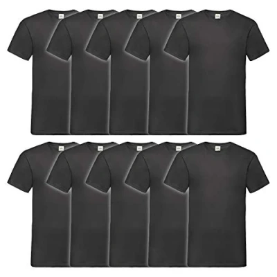 Fruit of the Loom Men's V neck Valueweight T Shirt, Black, XL UK