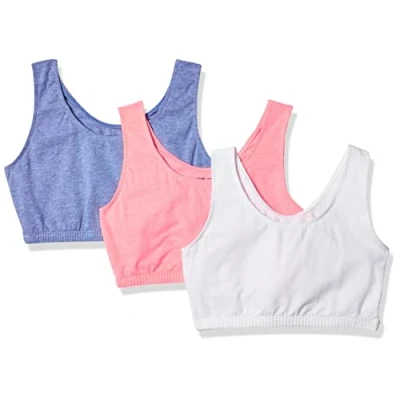 Fruit of the Loom Women's Built up Bra Sports (Pack 3), Heather Blue/Popsicle Pink/White, UK 10