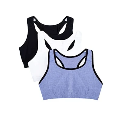 Supportive while keeping a smooth appearance 2-Ply stretch construction 3 pack of full coverage sport bras Pull on closure International products have separate terms, are sold from abroad and may differ from local products, including fit, age ratings, and language of product, labeling or instructions.
