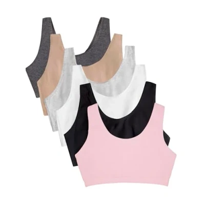 Lightweight and Comfortable: The Fruit of the Loom Women's Tank Style Cotton Sports Bras cotton pullover sports bras perfect for leisure or for the gym. Soft and Stretchy: These full coverage cotton sports bras have 2-ply construction that comfortably hug and support you while offering modesty without padding. Wire-free: These bras provide natural shaping and support without the discomfort of an underwire. Design: Wide strap bra design supports you throughout your day or during exercise without digging or pinching. Neckline scoops in the front of the bra. Scoop or racerback depending on color. Ultimate Comfort: With out bras, we've thought of everything including a tag-free and hardware-free design. No itchy tags or metal slides on these bras.