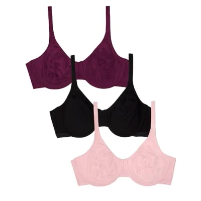 Fruit of the Loom Women's Cotton Stretch Extreme Comfort Bra, Purple Velvet/Blushing/Black, 36/D