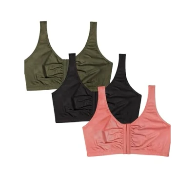 Fruit of the Loom Women's Front Close Builtup Sports Bra, Desert Dusk/Olive Night/Black, 44