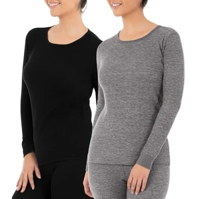 Fruit of the Loom Women's Micro Waffle Premium Thermal Underwear Tee Shirt Pajama Top, Black/Smoke Heather, Large