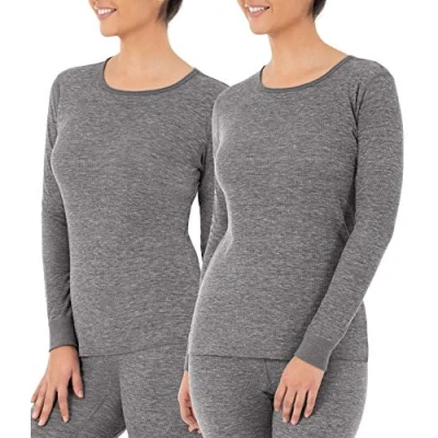 Fruit of the Loom Women's Micro Waffle Premium Thermal Underwear Tee Shirt Pajama Top, Smoke Heather/S, XL
