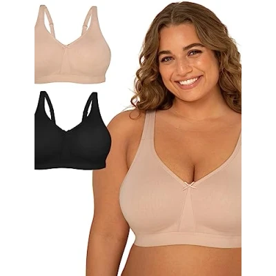 As comfortable as it is carefree, the Fruit of the Loom Women's Plus Size Beyond Soft Wireless Cotton Bra will quickly become your favorite bra for everyday use. This non-wired bra offers natural shape and support without the discomfort of an underwire. This soft cotton bra features full coverage, lightweight, breathable and stretchy unlined cups. We've added 10% spandex to this cotton cordless bra so it hugs your body, providing a natural lift. An internal harness inside the cups also helps provide forward projection and support. Extra wide, smoothing sides help reduce the appearance of side and back bulge and are designed to look seamless under clothing. U-back provides additional back smoothing. The super soft and stretchy bottom band and triangle shaped seams on the middle gore help anchor your bra, so now pulling or pulling all day long. Extra wide, adjustable straps provide comfortable support without digging or pinching.