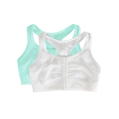 Fruit of the Loom Women's Racerback Front Closure Sports Bra, Mint Chip/White, UK 8 (Pack 2)