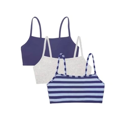 Fruit of the Loom Women's Spaghetti Strap Cotton Sports Bra All Day Comfort, Rugby Stripe/Skipper Blue/Heather Grey, 38