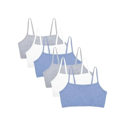 Fruit of the Loom Women's Sport bh mit Spaghettiträgern, Baumwolle, Vorteilspack Bra, Heather Grey/Heather Grey/White/White/Heather Blue/Heather Blue, 8 (Pack 6)