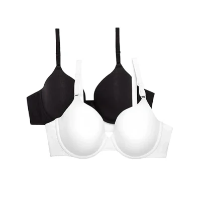 Fruit of the Loom Women's T Shirt Bra, Opaque, White/Black Hue, 38C (Pack 2)