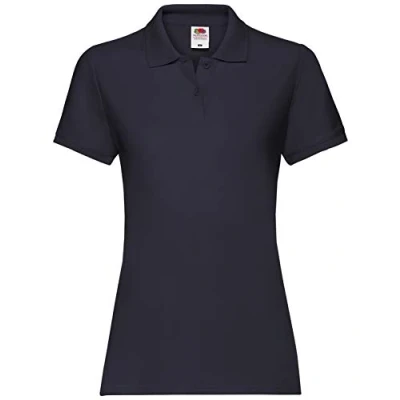 Fruit of the Loom Womens Ladies Lady Fit Premium Short Sleeve Polo Shirt (Deep Navy) Blue Cotton Size X Small