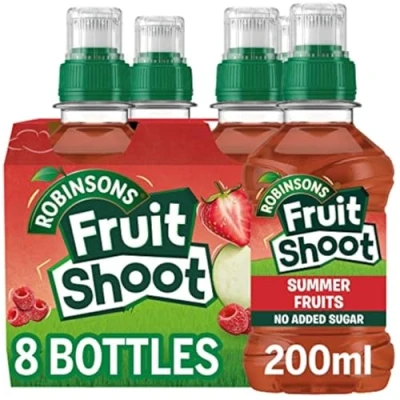 BURSTING WITH FRUITY FLAVOUR: Strawberries, raspberries and apples are all best friends in this bottle, so when your kid's been racing round the playground they can get refreshed with a deliciously fruity drink infused with vitamins NO ADDED SUGAR: Each bottle of original Fruit Shoot contains about half teaspoon of sugar only; never containing added sugars, fruit shoot is sweetened from the sugars naturally occuring in real fruit juice resulting in a refreshing, low calorie drink IDEAL FOR SCHOOL: All in a bottle with a spill free sports cap; it's just as rough and tumble, ideal for kids on the go REAL FRUIT IN EVERY DROP: There’s real fruit in every drop and each and every one contains multi-vitamins; Better still, we don’t add any sugar, artificial colours or flavourings so one can confidently give kids their favourite Fruit Shoot