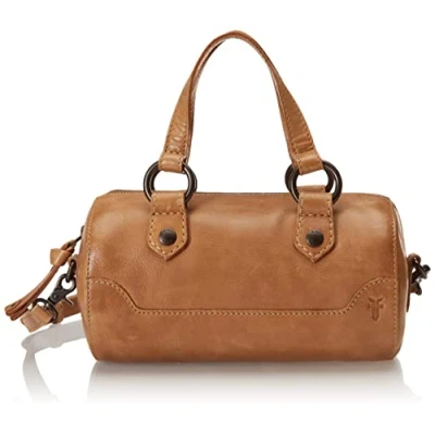 Frye Melissa Mini Barrel Crossbody Bag with adjustable leather crossbody strap and zipper closure Antique pull up leather and italian leather; Antique metal hardware 1 interior slip pocket Imported Measurements: 9.25"H X 5.25"W; 23" Strap Drop