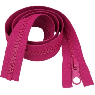 Amazon Marketplace#5 chunky zip, robust plastic teeth, ideal for heavy-duty sewing and frequent use. Fuchsia zip fabric surround is great for colour-coordinated repair work. Machine washable, colour-safe and tumble dry friendly. Sturdy metal pull tab glides easily, perfect for frequent zip use. Perfectly suited for jackets, coats, upholstery, and heavy textile repairs; versatile for sewing and crafting. 36" length zipper, constructed to ensure durable use, suitable for a wide range of crafts and garments.