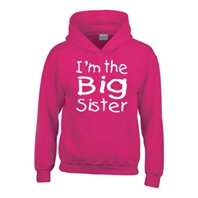 Our popular 'I'm the big sister design is now availabe in our great quality hoodies with glitter print The hoodie is also available in a t-shirt and in a sweatshirt. Just check out the rest of the Edward Sinclair range here on Amazon machine washable but no higher than 40 degrees A heavyweight hoodie at 280gsm with kangaroo pockets. There is a small hidden opening in the pocket to feed you earphones through do not iron directly on design and do not tumble dry
