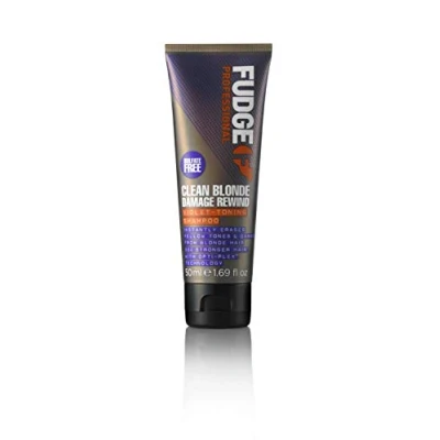 Fudge Professional Purple Toning Shampoo, Travel Size, Clean Blonde Damage Rewind For Hair, 50 ml