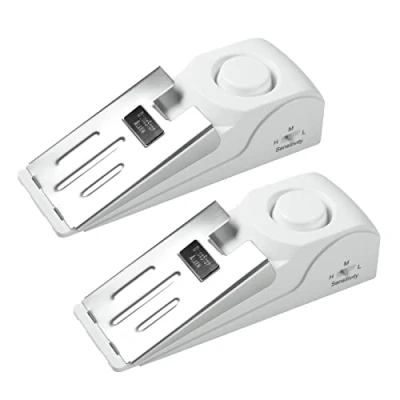 Fuers Door Stop Alarm, 2 Pack Portable Alarm Wedge Shaped Security with Non Slip Rubber, Loud and Adjustable Sensitivity Lightweight, Suitable for Home Hotel Travel, White