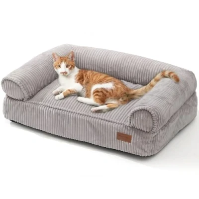 Premium Fabric for Comfort: This dog bed couch is made with soft corduroy fabric, providing excellent warmth making it an ideal choice for cold seasons. The interior of dog bed sofa is lined with a waterproof TPU coating, effectively preventing saliva or urine from seeping through and protecting the interior Soft and Supportive Experience: The cat couch is filled with raw cotton and shredded memory foam, offering furfriends an exceptionally comfortable and supportive resting surface. The armrests of kitten bed provide optimal support for the head and back, contributing to your pet's overall comfort and safety during rest Easy for Machine Wash: The cat sofa features dual zippers on the bottom and interior, allowing for easy disassembly and cleaning. The removable outer cover is machine washable, ensuring hassle-free maintenance and long-term durability Non-Slip Bottom for Safety: The base of the dog couch is constructed with an anti-slip material, ensuring a stable and secure resting place for pets. This thoughtful design prevents the fleece dog bed from shifting or sliding, even during active movements, enhancing safety and comfort Versatile Size Options: The medium-sized washable cat bed is ideally suited for cats and small dogs, while the large size accommodates medium-sized dogs or multi-pet households. Choose the appropriate size to provide your pet with the ideal space for rest
