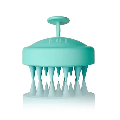 FUL Scalp Massager Brush Turquoise Silicone Exfoliator For Hair Growth, Flakes & Deep Cleansing