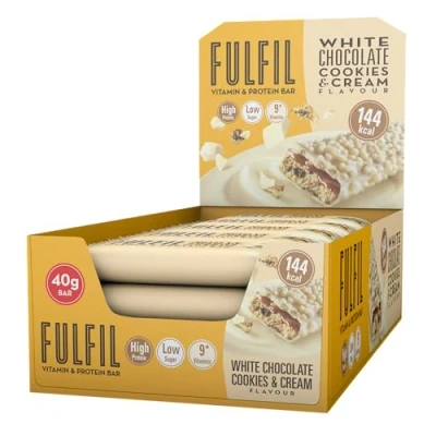 FULFIL Vitamin and Protein Bars (15 x 40 g Bars) — White Chocolate Cookies Cream Flavour 15g High Protein, 9 Vitamins, Low Sugar