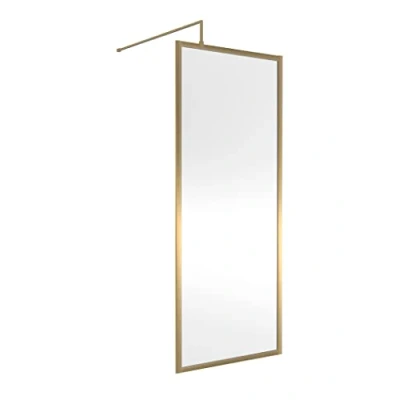Full Outer Framed Wetroom Screen 800mm w x 1850mm h with Support Bar 8mm Glass Brushed Brass Nuie