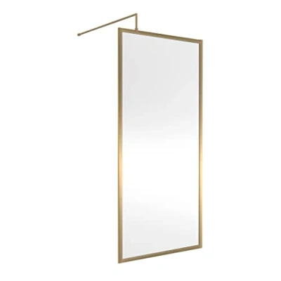 Full Outer Framed Wetroom Screen 900mm w x 1850mm h with Support Bar 8mm Glass Brushed Brass Nuie