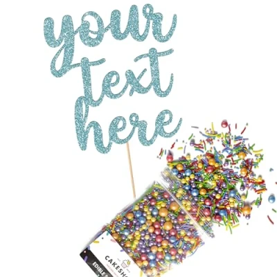This Cakeshop Cake Decorating Pack includes 1 x 480gsm Double Sided Glitter Card Topper & 25g Cake Sprinkles (option to upgrade to 50g while customising) - perfect for your party or celebration! Cakeshop Sprinkles are Vegan, Gluten Free, Lactose free and Nut Free, all while looking amazing in striking colours and an assortment of sizes for a truly 'premium' finish Size: Sprinkles pack (perfect for a large cake) 25g, you can also upgrade to a 50g pack when customising your topper | Glitter Topper Approx 152mm (6") x 175mm (7") Toppers make a great keepsake to remember this special occasion forever, often our customers will remove the support sick and use on bedroom doors (until their next birthday!) Cakeshop Glitter Toppers are made from 480gsm premium double sided glitter card, select which colour topper you'd like then click 'Customise' to add your text personalisation and choose your sprinkles Choose from either Metallic or Rainbow sprinkles and upgrade to 50g packs in the 'Customise' section, so that you can match your sprinkles to your theme (or save them for next time!) All 'Cakeshop Cake Decorating Packs' come beautifully packed with simple to understand instructions so that you can quickly turn any cake, home made or shop bought (we wont tell!) into the perfect cake After you have added your custom information in the 'Customise Now' section our designers hand make your topper in the same font, style and topper colour as the design you've selected Cakeshop have been making the highest quality Cake Decorations since 2011 - we have thousands of design options available in our store for every occasion and theme (click 'visit the cakeshop store' above) It should go without saying - but Glitter Card toppers are flamable! We therefore recommend using only Acrylic toppers alongside candles for safety