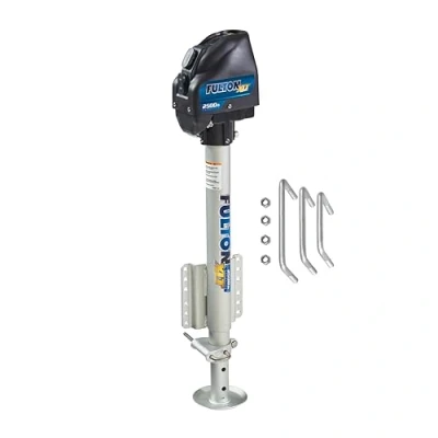 CAPACITY: Fulton XLT Powered Electric Trailer Jack with heavy duty 2,500 lbs. lift capacity and corrosion-resistant surfaces provides all the capacity and features you want in essential boat accessories SPRING LOADED DROP LEG PULL PIN: Side mount power trailer jack features exclusive spring-loaded drop leg pull pin to provide 22 inches of total travel CORROSION RESISTANT FINISH: Sharkskin Premium Finish and stainless-steel internal ACME screw for optimal corrosion resistance in this trailer accessory MANUAL OVERRIDE: Electric jack for trailers powered through 7-way OR dedicated common battery (with winch). Manual override using standard tools in case of power loss MOUNTING HARDWARE INCLUDED: Includes mounting hardware for up to 5-inch-high trailer tongues