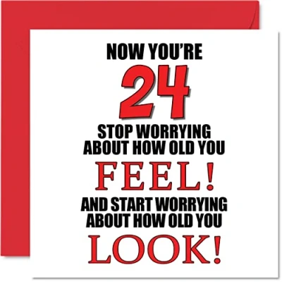 Fun 24th Birthday Cards for Men Woman How old You Look Happy Card Son Daughter Brother Sister Uncle Auntie Niece Nephew Cousin, 145mm x Greeting