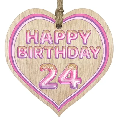 MAKE THEM SMILE WITH THIS BEAUTIFUL GIFT: This exceptional quality heart shaped wooden plaque shows the design: "Happy Birthday 24". If you are looking for funny thinking of you gifts for friends then then this hanging wooden heart is bound to make them smile. Not just for a women's 24th birthday presents also for men 24th birthday gifts for women friend. EVERY HEART IS TRUELY UNIQUE: Unlike other brands our beautiful plaques are made from raw wood and not a laminated MDF. This means that every single heart will have it's own pattern and indentation from the grain of the wood used. Each heart is hand finished with a lacquer varnish that really accentuates the the deep colour of the wood and also makes the ink of the pattern/text clearer and brighter in colour. WHAT DO YOU GET: This thoughtful presents for women is made from the highest quality wooden signs and plaques. Incredibly sweet cheer up positivity keepsake gifts for women and men from Stuff4 Ltd. MADE AND QUALITY CHECKED IN THE UK: We manufacture all our product right her in the UK so you can be sure of a fast turnaround and a product that is expertly made - mental health gifts, special friend gifts, miss you gifts for friends, positive gifts for women and birthday gifts for her or him. EASY TO HANG: The hanging wooden heart plaque comes equipped with a small jute twine, which can be then used to hang it on somewhere for decoration. The wooden sign is convenient for you to assemble without spending too much effort and time.