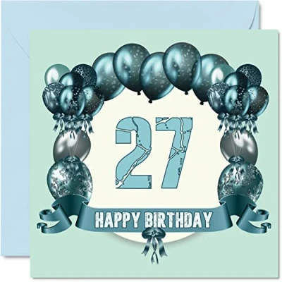 Fun 27th Birthday Cards for Men Balloons Happy Card Son Nephew Niece Sister Cousin Brother Auntie Daughter Uncle, 145mm x Greeting Cards,