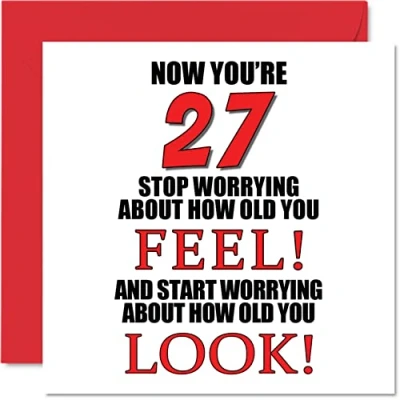 Fun 27th Birthday Cards for Men Woman How old You Look Happy Card Son Daughter Brother Sister Uncle Auntie Niece Nephew Cousin, 145mm x Greeting