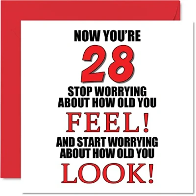 Fun 28th Birthday Cards for Men Woman How old You Look Happy Card Son Daughter Brother Sister Uncle Auntie Niece Nephew Cousin, 145mm x Greeting