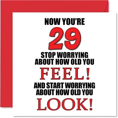 Fun 29th Birthday Cards for Men Woman How old You Look Happy Card Son Daughter Brother Sister Uncle Auntie Niece Nephew Cousin, 145mm x Greeting