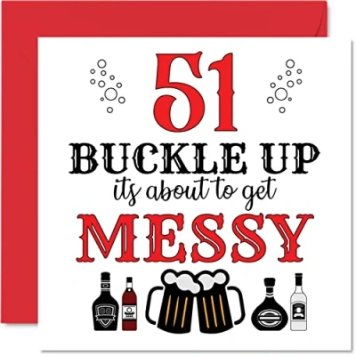 Fun 51st Birthday Cards for Men Woman Buckle Up Happy Card Dad Mum Grandad Nanny Grandma Uncle Auntie Cousin Friend, 145mm x Greeting Cards, Joke