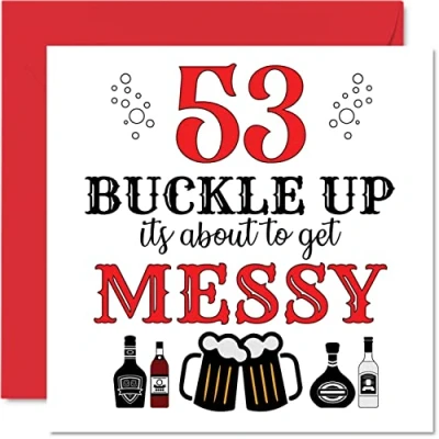 Fun 53rd Birthday Cards for Men Woman Buckle Up Happy Card Dad Mum Grandad Nanny Grandma Uncle Auntie Cousin Friend, 145mm x Greeting Cards, Joke