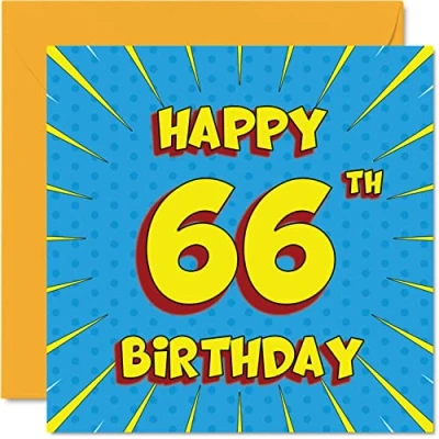 Fun 66th Birthday Cards for Men Woman Comic Book Happy Card Nanny Gran Grandma Dad Mum Grandad Cousin Auntie Uncle, 145mm x Greeting Cards,