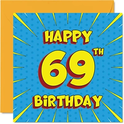 Fun 69th Birthday Cards for Men Woman Comic Book Happy Card Nanny Gran Grandma Dad Mum Grandad Cousin Auntie Uncle, 145mm x Greeting Cards,