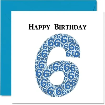 MAKE THEM SMILE WITH THIS FUN BIRTHDAY CARD: This exceptional quality birthday card for her or him shows the design "Happy Birthday 6". If you are looking for funny birthday cards for Girls, then then this happy birthday card is bound to make them laugh. Not just for friendship gifts for Girls this could also be for Best Friend, Work Colleague, Son, Daughter, Brother, Sister, Grandson, Granddaughter, Colleague, Niece, Nephew, Cousin. WHAT DO YOU GET: The card is printed on one side and BLANK ON THE INSIDE to allow you to write your very own message. The unique fun design is printed on a specially sourced and environmentally responsible board. At 360 microns thick the natural white one-sided gloss board has a quality look and feel. Supplied with a coloured gummed envelope to complement the design and ready to be sealed and sent in the post. 6th birthday card for him, birthday card for Son. NO INK SMUDGES: There is nothing worse than writing inside a card to find that the shiny surface makes the ink smudge. This is why we use a high quality one sided coated board. The uncoated side will absorb more of the ink from your pen to make smudging a thing of the past. Son birthday cards, best friend birthday card, birthday card funny, rude birthday cards for Girls. SIZES: Greeting Card = 145mm x 145mm, Envelope = 155mm x 155mm, Card Thickness = 360 micron. Great friend birthday cards, male birthday card, 6th birthday card, happy birthday Daughter cards, husband 6th birthday cards, stepdad birthday card. MADE AND QUALITY CHECKED IN THE UK: We print and manufacture all our product right her in the UK so you can be sure of a fast turnaround and a product that is expertly made. Using environmentally responsible premium board our card is conscious of the responsible management of the world's forests - 6th birthday cards for Boys, Boyss birthday cards, oldi card.