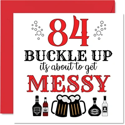 Fun 84th Birthday Cards for Men Woman Buckle Up Happy Card Dad Mum Great Grandad Grandpa Nanny Grandma Gran Uncle Auntie, 145mm x Greeting Cards, Joke