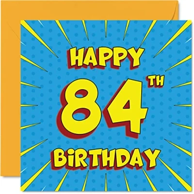 Fun 84th Birthday Cards for Men Woman Comic Book Happy Card Grandpa Grandma Nanny Dad Mum Great Grandad Auntie Uncle Gran, 145mm x Greeting Cards,