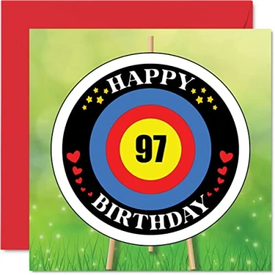 Fun 97th Birthday Cards for Men Woman Target Age Happy Card Great Grandad Grandpa Nanny Grandma Nan Gran Granny Dad Mum, 145mm x Greeting Cards, Playful