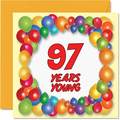 Fun 97th Birthday Cards for Men Woman Years Young Happy Card Great Grandad Granny Nanny Grandma Mum Gran Grandpa Dad Nan, 145mm x Greeting Cards,