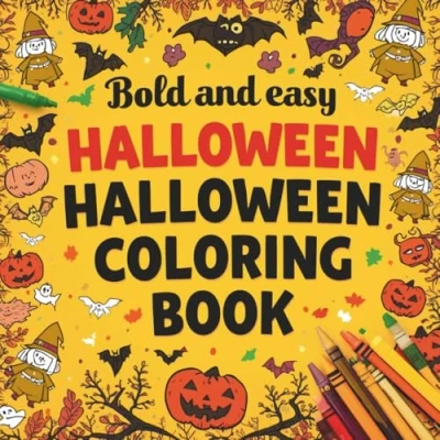 Fun and Simple Spooky Designs for Kids, Toddlers, Adults Cute Pumpkins, Ghosts, Witches & Bats: easy Halloween coloring book, bold ... book kids ages 4 8