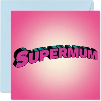 Fun Mothers Day Cards for Mum Supermum Happy Mother's Card from Daughter Son, Birthday Gifts Mum, 145mm x Bday Greeting Mummy Mama Mom